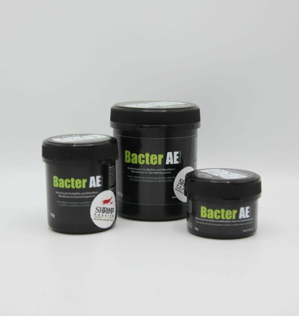 Bacter AE Micro Powder enrichit votre aquarium en micro-organismes, acides aminés et enzymes essentiels. Bacter AE améliore la qualité de l’eau et favorise le développement du biofilm nécessaire aux crevettes, en particulier à leurs petits. Ce biofilm assure un apport alimentaire constant et riche en protéines, ce qui augmente considérablement le taux de survie des jeunes crevettes et favorise leur développement sain. De plus, les bactéries probiotiques contenues dans Bacter AE, entre autres, améliorent l’absorption des nutriments et régulent la digestion.