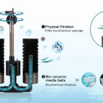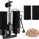 • Filtration physique et filtration biochimique : avec le design en éponge à 9 couches en forme de nervure, vous pouvez combiner à la fois la filtration mécanique et biologique, la biofiltration, l’oxygénation et la filtration physique. L’éponge peut absorber les particules fines pour obtenir l’effet de purification de l’eau. Les billes biocéramiques améliorent l’effet filtrant et peuvent nettoyer rapidement la qualité de l’eau.