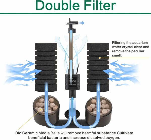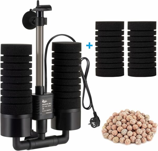 • Accessoires complets : livré avec 4 éponges, un paquet de billes filtrantes en céramique et 2 ventouses. Le filtre complet offre un environnement confortable et propre pour les petits poissons et les crevettes. L’éponge de rechange est placée dans la boîte filtrante, il suffit de retirer l’éponge du filtre pour la nettoyer ou la remplacer.