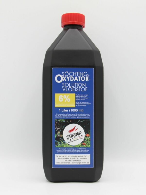 Le liquide oxydator 6% de Söchting, est une bouteille de recharge d’un litres pour réacteur Oxydator. Ce produit est composé de 94% d’eau distillée et 6% peroxyde d’hydrogène (2 HO2O) et est dédié uniquement pour recharger les réacteurs Oxydator de SÖCHTING.